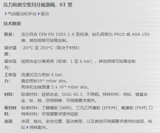 KAMMERER 压力和真空密封分离滑阀ST 型系列
